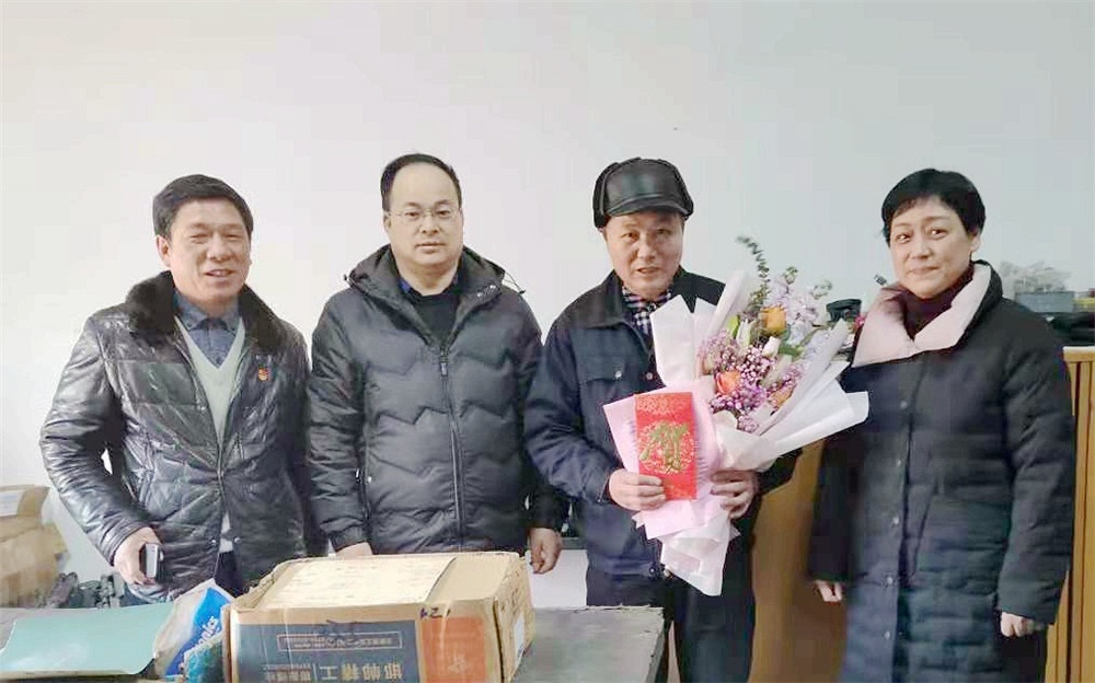 2021年1月12日,浙江省國防工業(yè)工會徐航主任、王哲(副處級調研員)代表省國防工業(yè)工會來公司慰問全國勞動模范余昌琴和困難職工。公司黨委書記、工會主席姚錦南陪同。